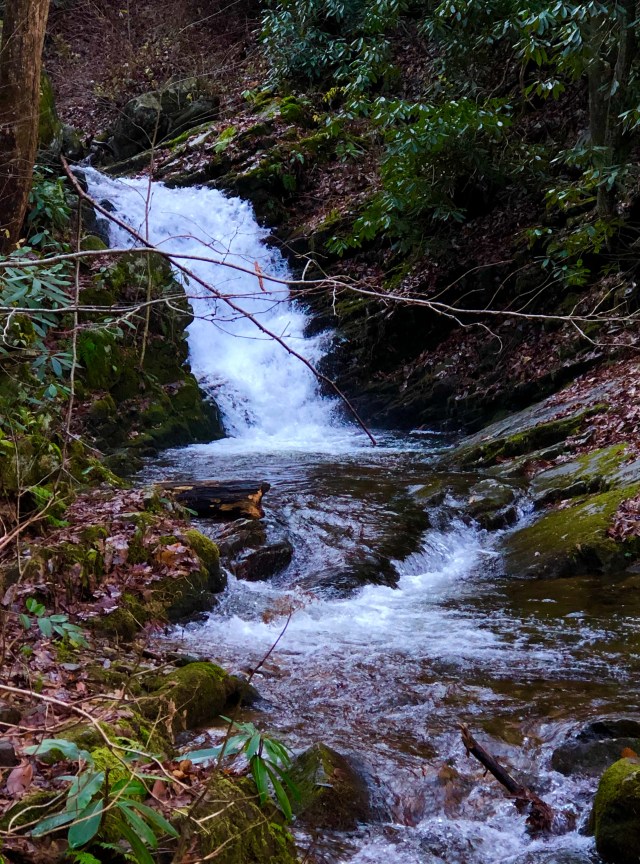 I walked a little ways upstream looking for places to rock hop while Rob went downstream. I eventually joined him and we admitted defeat. Pete’s Branch was not going to be a possibility for us today. As we discussed our options, I took some photos of the small cascade where Squibb Creek flows into Horse Creek.