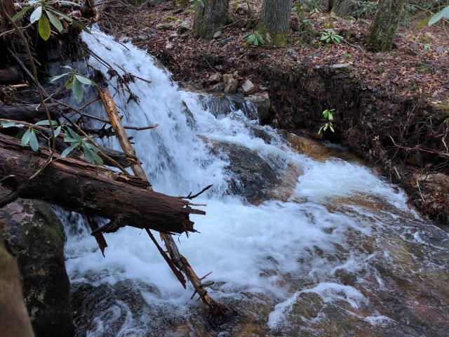 A thought had been nagging at me since we climbed past the falls, and I stopped to check my phone to see if I was right. I thought I remembered hearing rumors of a second waterfall above Margarette called Bailey Falls. I had just enough of a cell signal to look it up and found that I had remembered correctly. However, the website I looked up described the trek to it as being a creek walk. I told Rob about it when I reached the other side of the creek, but we decided to save that for another day when the water wasn’t so high.