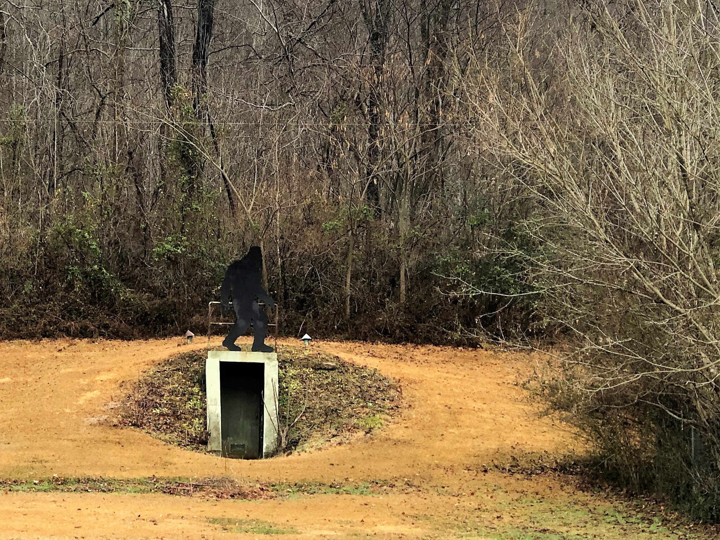 I paused again as we drove through Dungannon to take a photo of a giant Woodbooger figure perched above the entrance to a storm cellar in the back yard of a home. We had seen it on previous trips, but I wanted to get a photo.