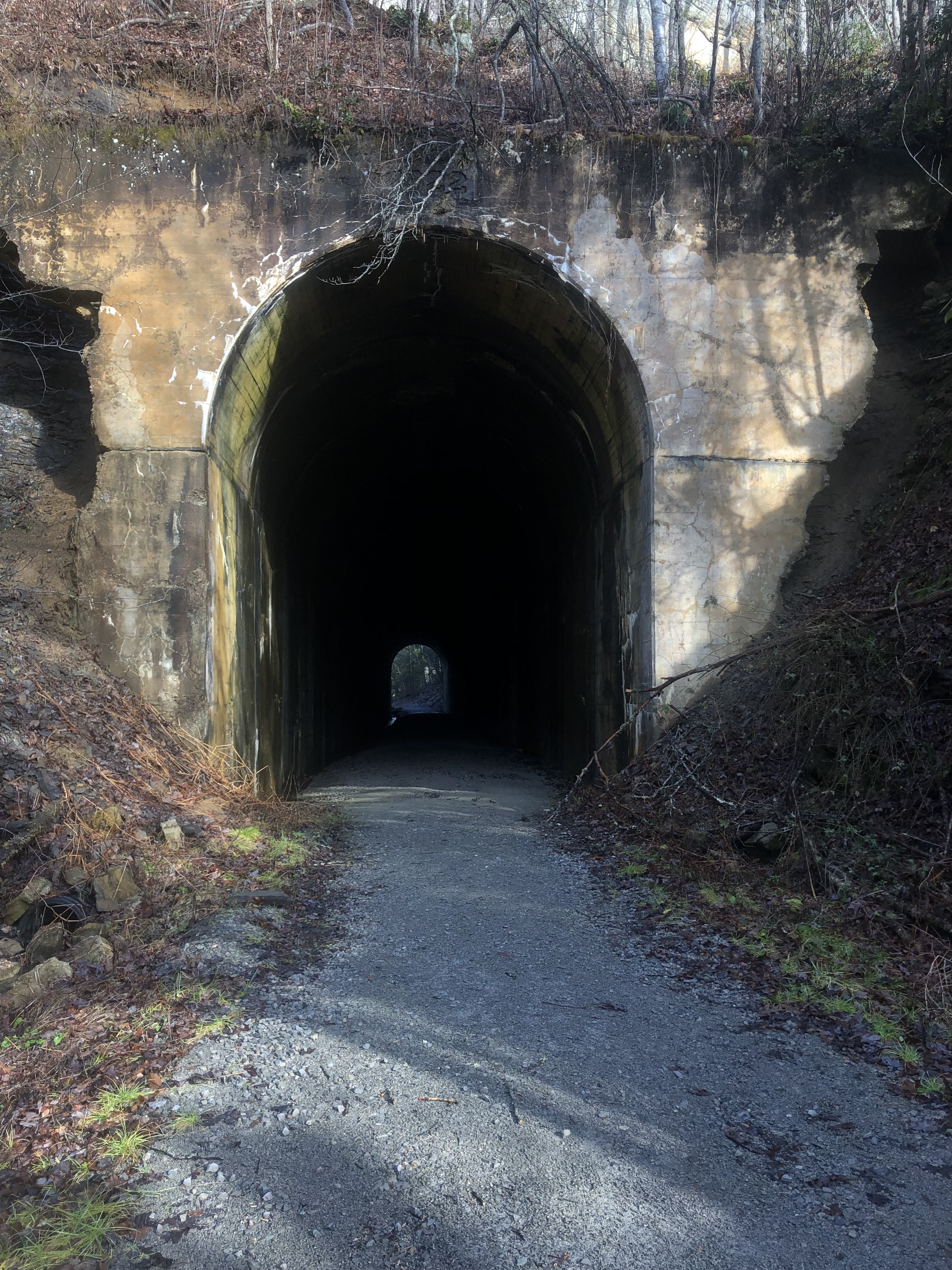 Within sight of where we were searching was the Swede Tunnel. It was built in 1922 to provide passage for the railroad. There is something magical and mysterious about abandoned railway tunnels. I always enjoy walking through them. This tunnel is also the site of an EarthCache. As you may have learned in my most recent post, an EarthCache has no physical container or log sheet. It is at the sight of some geological feature, and in order to log it you must answer questions about what you observe at the location and learn from your visit or from reading the cache page.