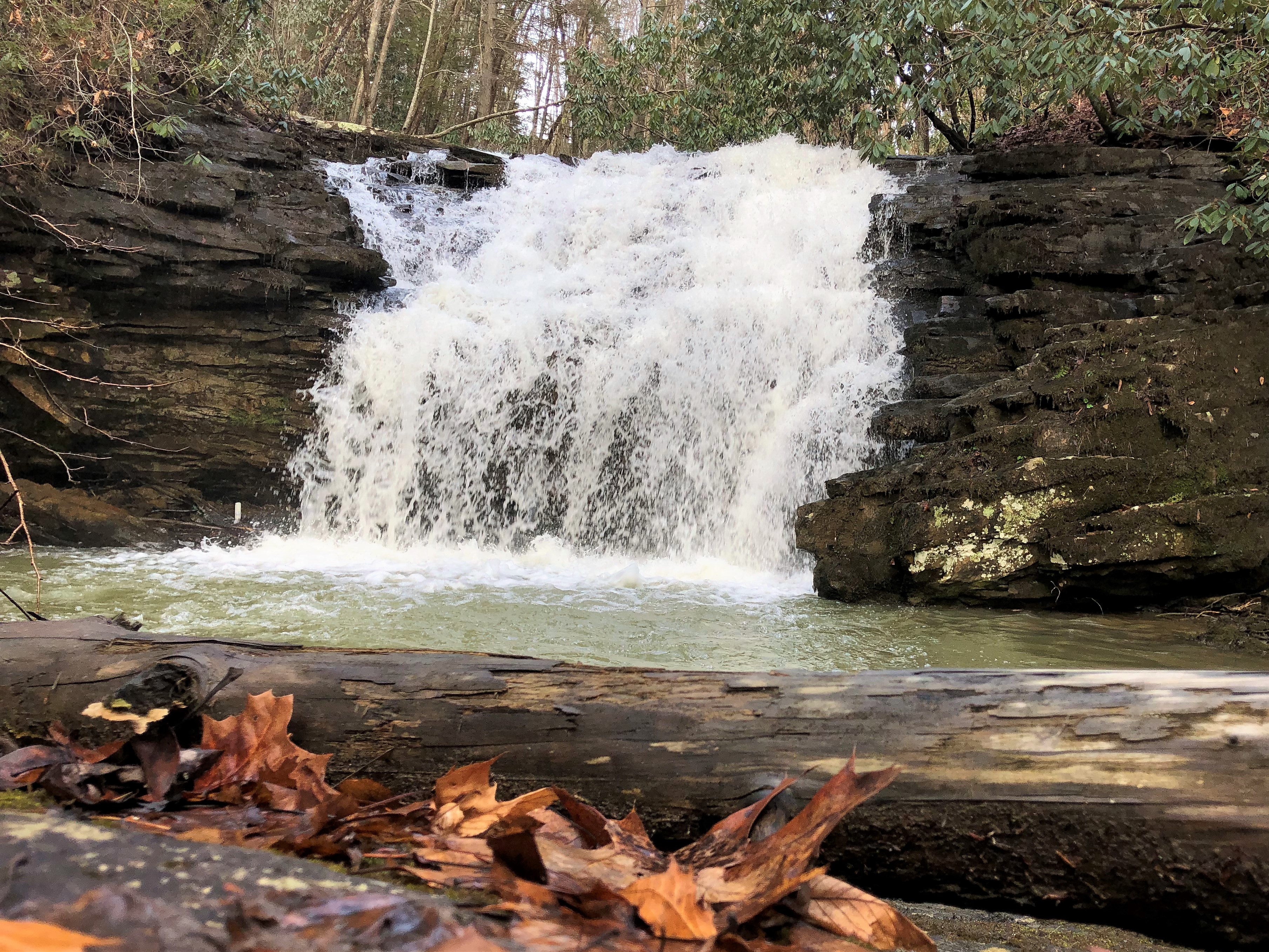 Because we have hiked a few times at nearby Stony Creek, and have paddled a couple of times in this area, we are very familiar with the route to this part of Wise County. However, as we traveled along the Veterans Memorial Highway between Gate City and Dungannon on this day, Rob suddenly noticed a waterfall we had never seen before. I made a U-turn at the next intersection, drove up past it until I could turn around again, and then pulled over on the shoulder when we neared the spot he had seen it.
