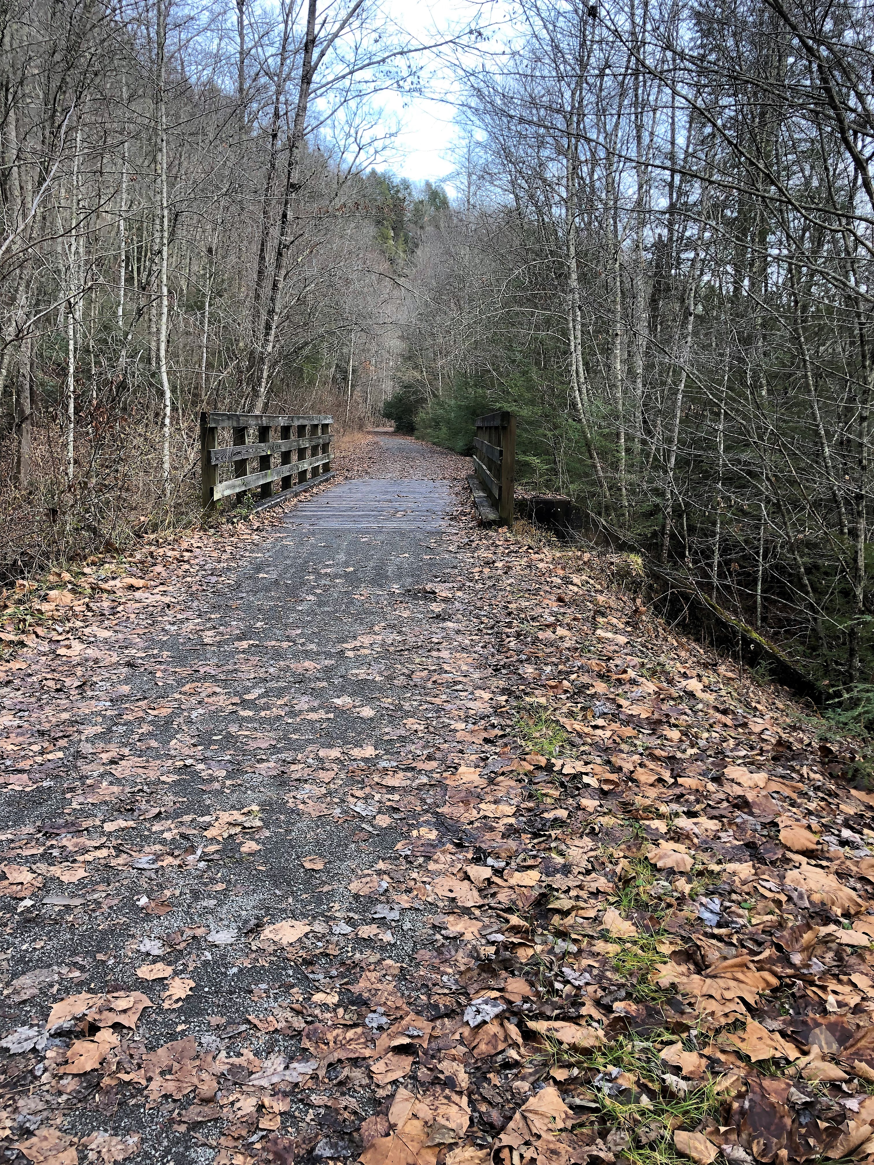 The Guest River Gorge Trail near Coeburn, VA is a 5.9 mile long trail along an abandoned rail-bed. The trail follows the Guest River to its confluence with the Clinch River. This is a well-maintained gravel trail suitable for hiking and biking. To the end of this trail and back would be a hike of nearly 12 miles.