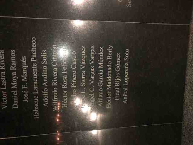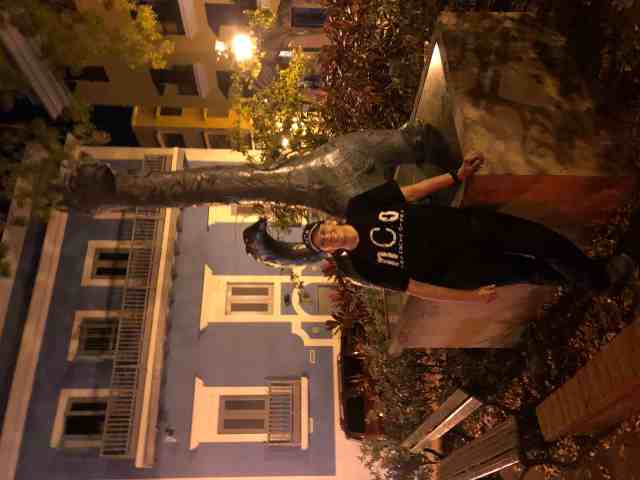 Omar circled back around and we jumped back in the car with him. We jumped out at two more locations to find caches. One was at a monument commemorating 500 years since the discovery of Puerto Rico in 1493 by Christopher Columbus. The other was in a park outside the Children’s Museum next to a very interesting sculpture of a dolphin/giraffe/cat. It had the body of a dolphin, the neck of a giraffe, and the face of a cat.