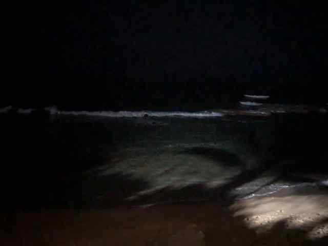 Omar then drove us to the Capitol Building so that I could find his cache nearby. It was across the street from the courthouse and required us to go down steps to the beach. The sea was enveloped in blackness but I could hear the waves rolling in to the sand and occasionally see the glimmer of white caps and foam. We used the flashlights on our phones to light our way as we walked across the sand and then climbed across boulders. The exposed rocks had previously been covered with earth, but the hurricanes had eroded away 15 to 20 feet of shoreline.