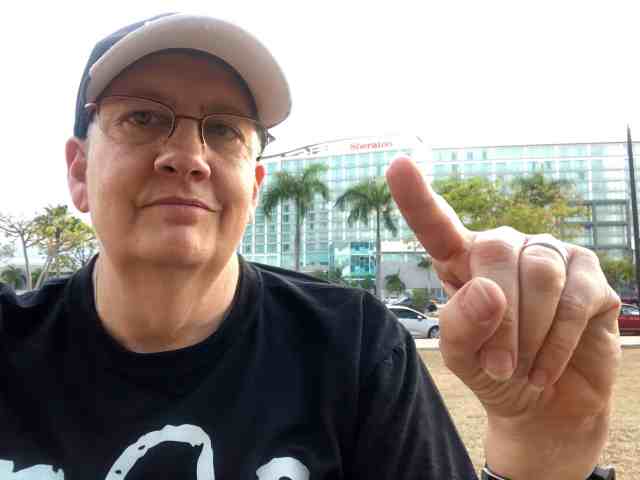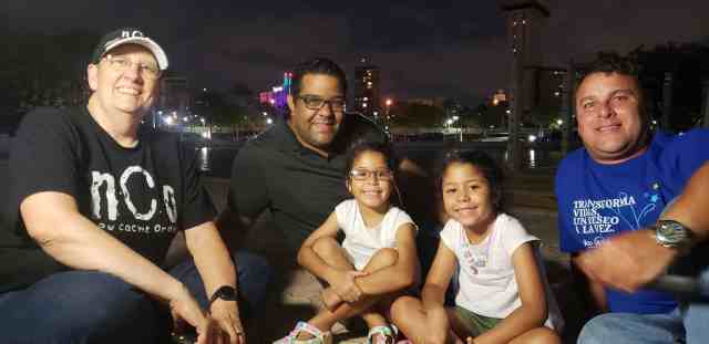 At about 6:40 I saw a couple of people approaching and was excited to see that it was ellinas (Emma) and omarcelli (Omar). These are two of the friends I had met on the cruise years ago. I had seen them both a few years ago when Geowoodstock, a mega geocaching event, was held in Waynesville, NC, but had not had the chance to see them last year when Geowoodstock was in Cincinnati. I had kept in touch with them for a few years via Facebook, and had reached out to each of them after Puerto Rico was slammed by Hurricanes Irma and Maria within a two week period in September 2017. Fortunately, they and their families survived the storms and have since repaired the damage to their property.