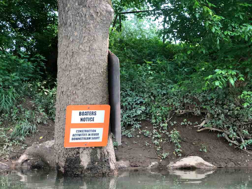 As we approached the Weber City bridge, I noticed something I had never seen on the river – an orange “Construction Ahead” sign.