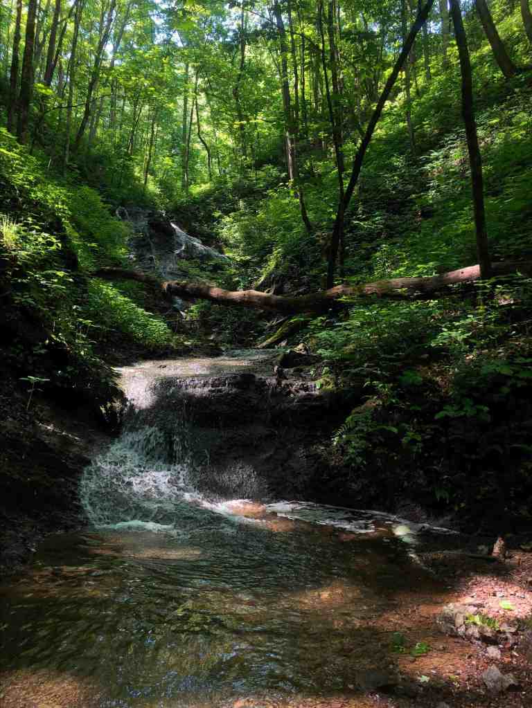 We took photos, and I climbed up the lower drop to get a different view of the falls. With all of the lush vegetation surrounding the falls, we felt as if we were in a tropical paradise. It was difficult to get good photos of the falls since it was such a sunny day. The sunlight streamed in between the trees, making brights spots among the shadows that do not convert well to the camera lens. Perhaps I can come back on a cloudy day.