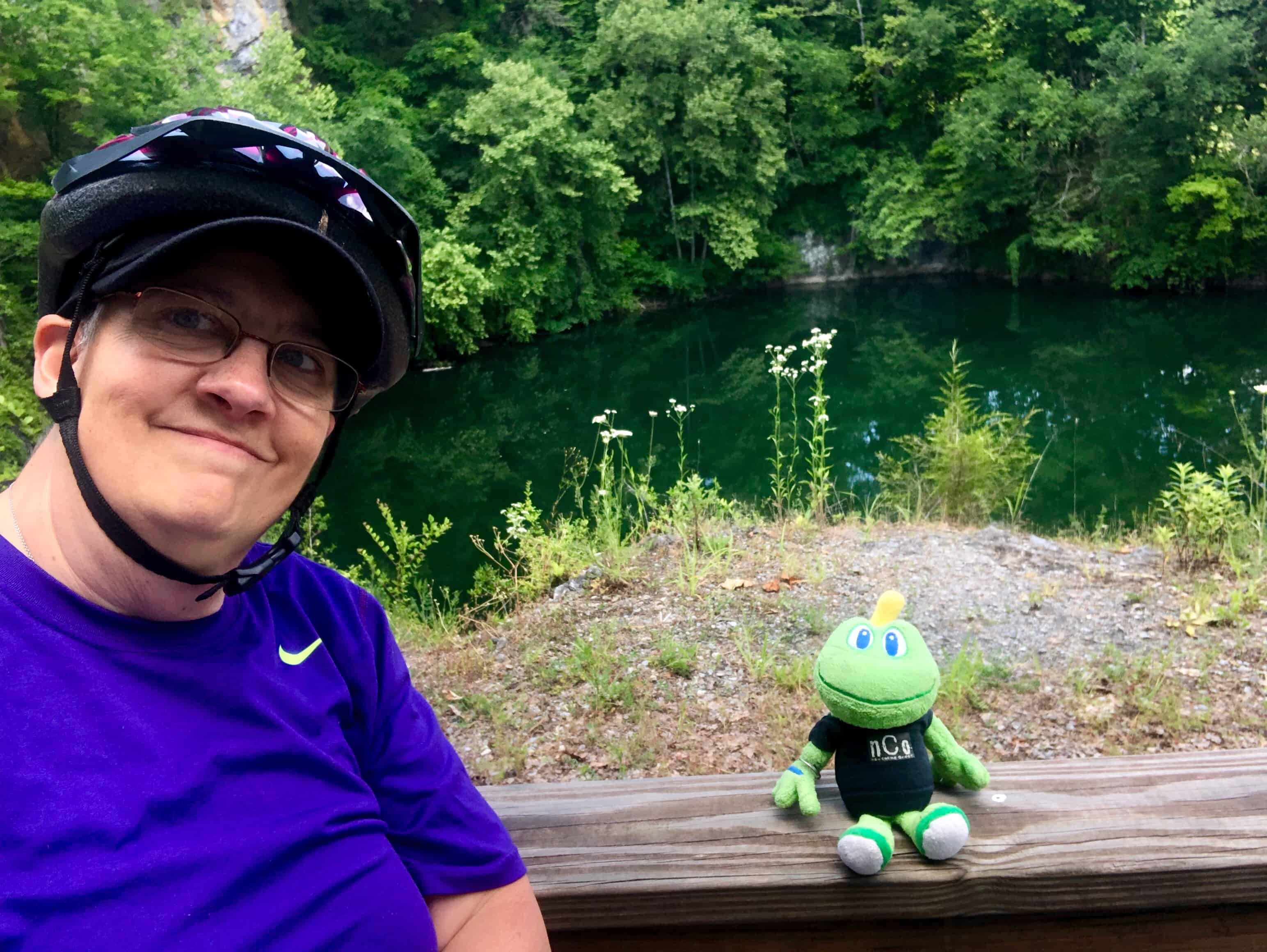 The Cranberry Furnace Company in Johnson City also smelted iron ore from materials mined in the Cranberry Mine in Avery County, North Carolina. These materials were the subject of the EarthCache, and examples of them surrounded a nearby informational sign. I collected the info I needed, took a picture of myself and Signal the Frog, and then made my way toward the next cache.