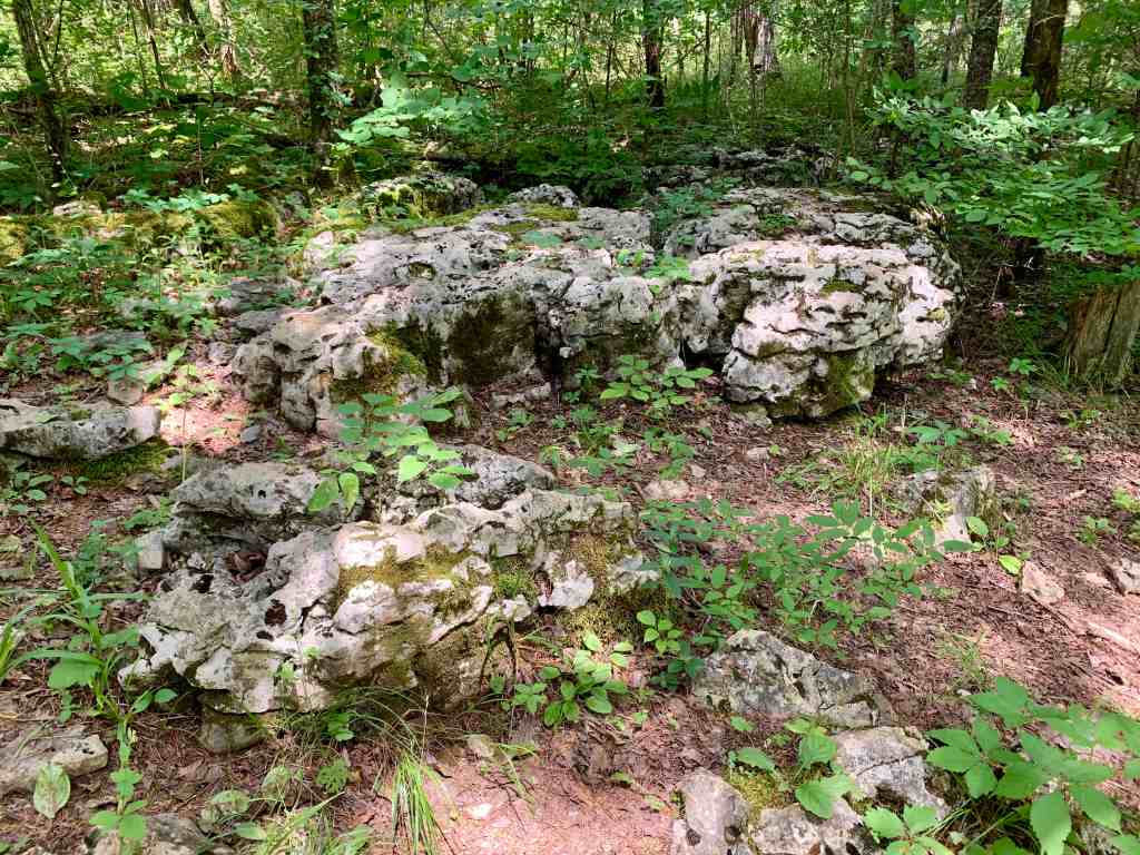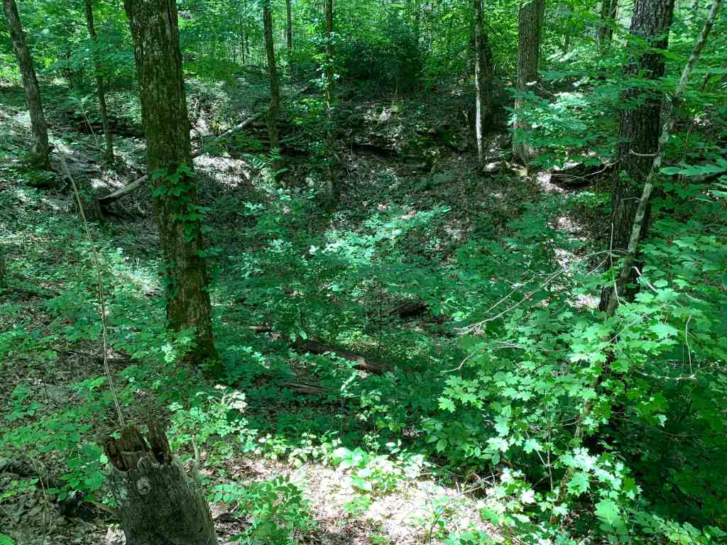 As I approached another sinkhole, I could see from my phone that the geocache was on the other side. I stopped to study the situation and determine my best route; down into the sinkhole and up the other side, or around? The trail seemed to continue around the hole, so I followed it until I found an even fainter path through the woods on the other side.