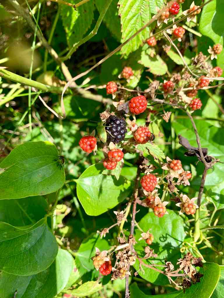 My next stop was at the driveway for a church where an ammo can was hidden in an unmaintained area of the church yard. Thankfully, I only had to battle the blackberry bushes, high grass and other dense vegetation a few feet in before finding it. It was attached to a cable so that muggles wouldn’t steal it, so I stepped back out into the open grass to open it and inspect the contents. After signing the log, I decided not to fight through the overgrowth again, and just chucked it back in, under the bush where I had found it. BackWoodsAng would have been proud. Before leaving, I helped myself to the one ripe blackberry on the bushes. It tasted like summer.