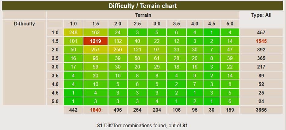 Fizzy Challenge – finding at least one cache with every possible D/T combination.