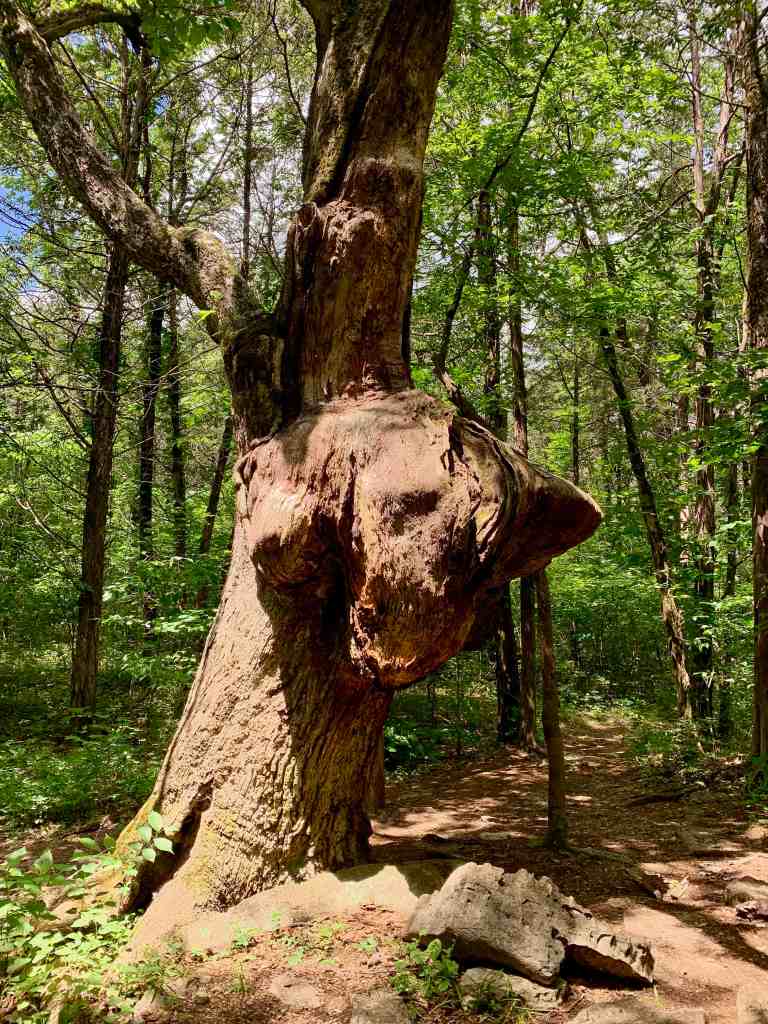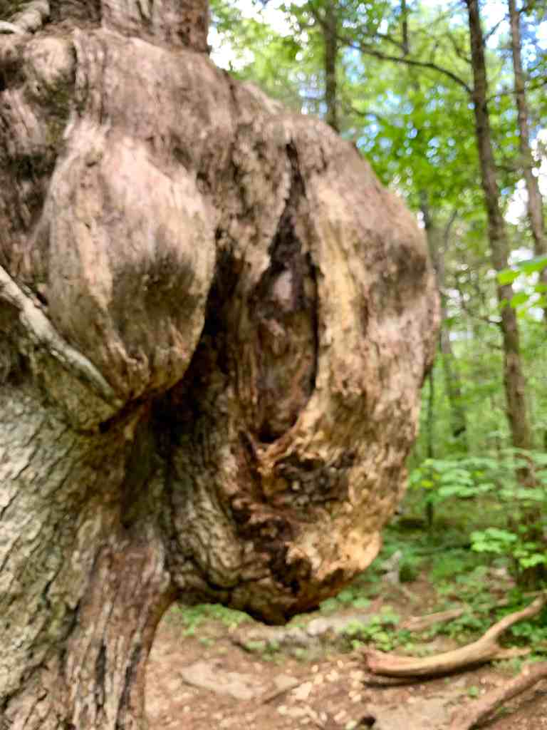 First, I passed what the trail map describes as “a very old, very large and fantastically burled chinkapin oak tree.” Indeed, it had a very impressive burl. From one angle, it looked to me like the head of a buffalo.