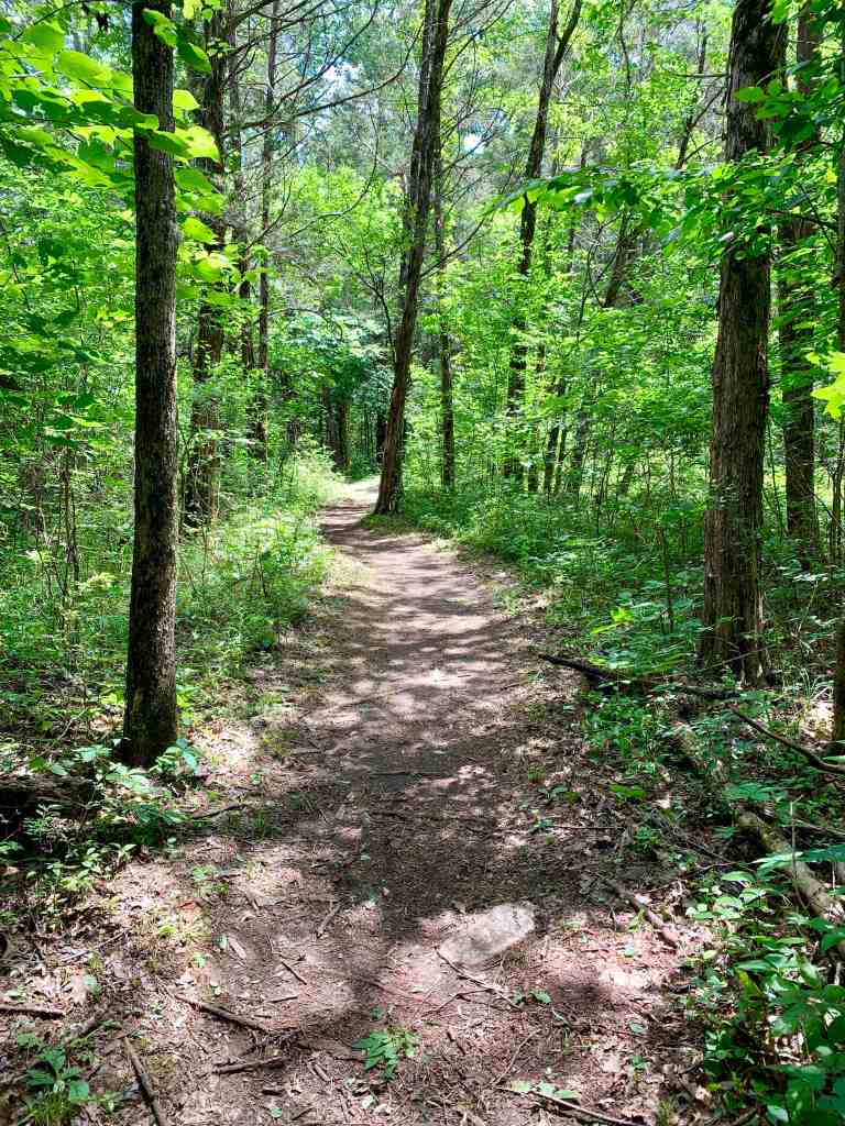 The lush, green forest surrounding me muffled the sounds of the outside world, and the shade and a light breeze made the 70º weather perfect for hiking. The terrain was very level; in fact, I would only have a total elevation gain of 26 feet during the whole one mile hike.