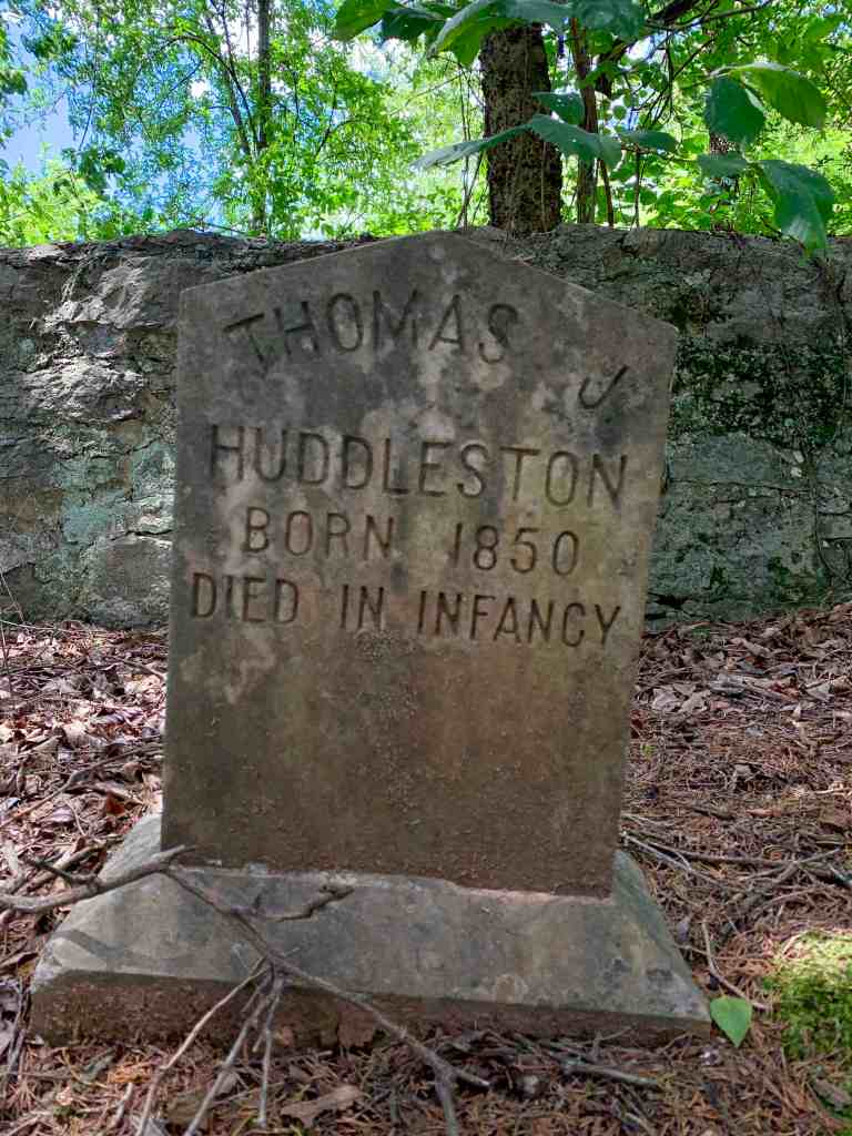 Back in the car, I checked the geocaching map again and noticed a series of caches not too far away. I made my way in that direction making a few stops along the way to log the caches in between. The first was in a lovely cemetery called the Huddleston Family Grave-Yard. I took a picture of the sign identifying it to send to my niece. I told her I had found some of her husband’s long-lost relatives since his last name is Huddleston.