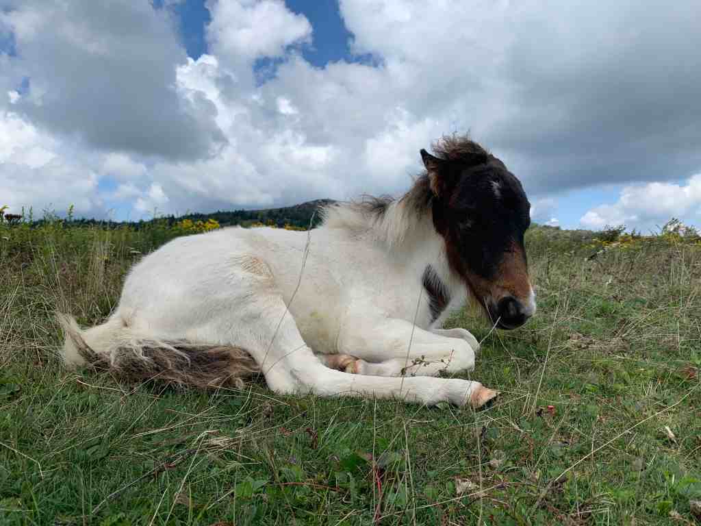 Two little girls were petting one of the foals that was lying in the grass. I heard one say, “It is sooooo cute! Can I have it for my very own?”