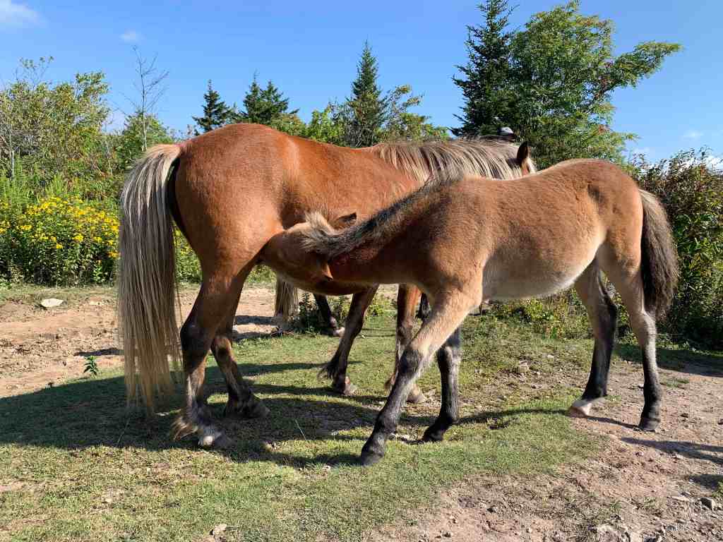 Just a short distance up the trail we saw more ponies walking toward us. This resulted in another stop to take photos of them. One of the foals began nursing as we watched.