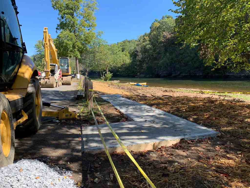 We stopped for lunch at the Blevins Road boat ramp. When we arrived, there was no one there which is very unusual. The lot is usually filled with vehicles and boat trailers, and there are usually a few people there fishing. There was construction equipment parked there and evidence of earth having been recently moved. There was also some newly poured concrete walkways but we couldn’t figure out where they were leading.