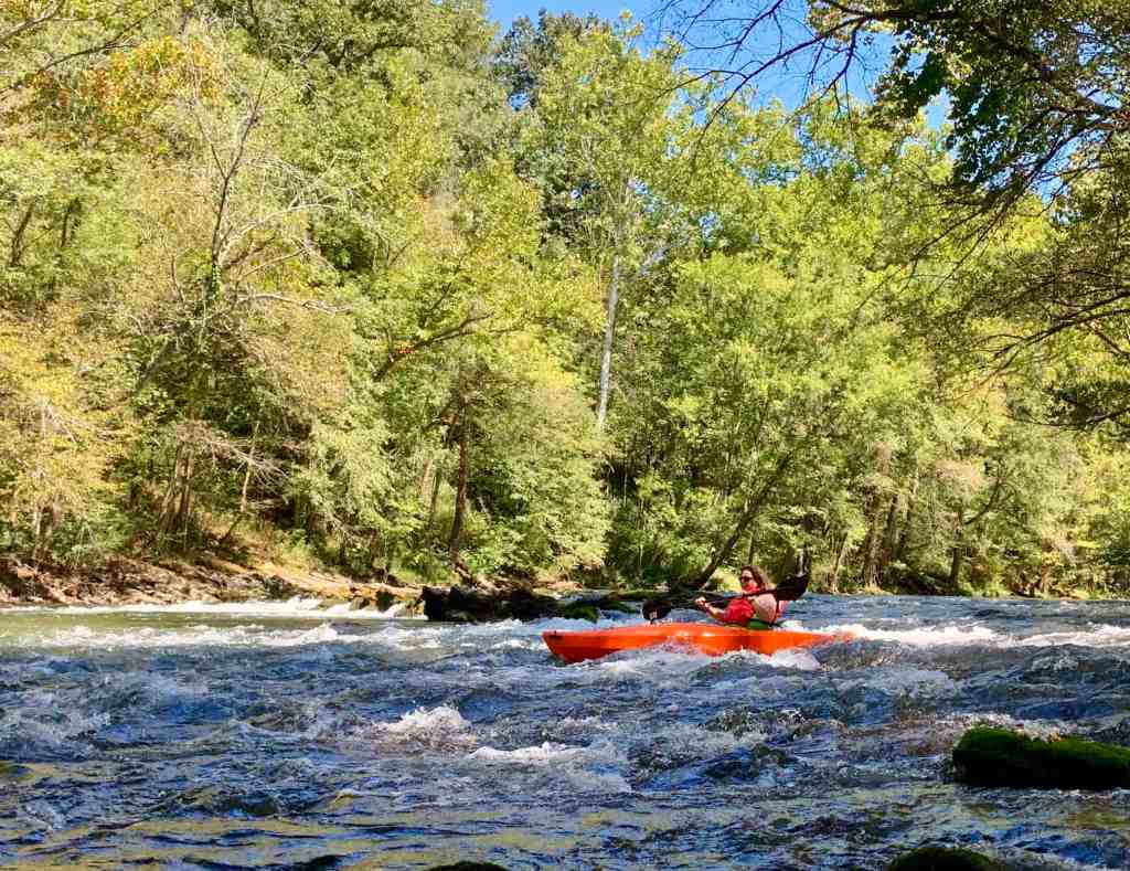 “Good! I’m sticking with you.” she said. We introduced ourselves using first names. She was Lisa and this was her first time kayaking on a river! We were very glad that we had met up with her because this was not the best place for a solo novice.