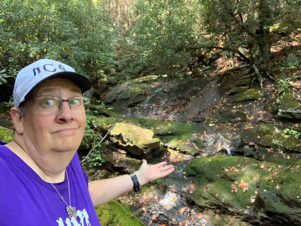 It was just 1:00 pm, and I was not in a hurry to get home because Deban was in Charleston, SC. I decided to check the geocaching app for other possibilities in the area. I ended up visiting an EarthCache between Big Stone Gap and Appalachia called Roaring Fork Falls. The waterfall was barely trickling rather than roaring, so I decided I need to come back and visit it after more rain. In addition to the EarthCache I found a traditional cache here.