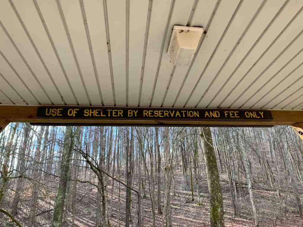 Since it was lunch time, we sat down in one of the picnic pavilions to eat. Signs warned us that we had to have reservations and pay a fee to use the pavilion, but we decided that wouldn’t be an issue on this cool day.