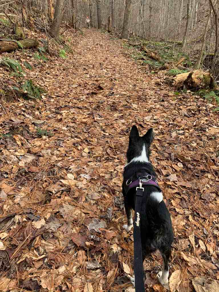 I still had Andy off leash, and he ran far ahead of us as we headed downhill. Too far. Thankfully, he quickly responded to Rob’s stern command to come back, and I put him back on the leash. When I first started taking him hiking, he always stayed very close whenever he was off leash. He has gotten much bolder, so I have to be very careful with him now.