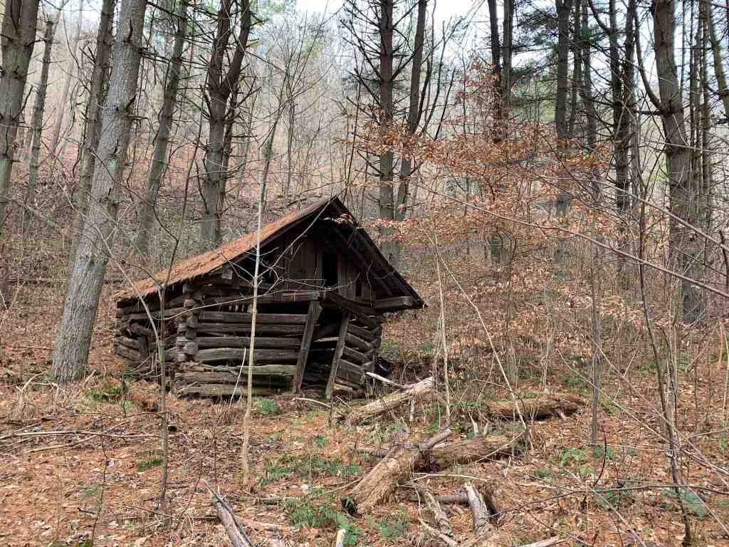 Someone had cleared the trail since Rob’s last visit here, so we were easily able to make it back to the junction with Back Hollow Road. Within minutes we were passing the cabin that sits at the primitive camp site. The hiker we had seen passing us a few minutes earlier was sitting on the porch and we called out a greeting to him as we passed.