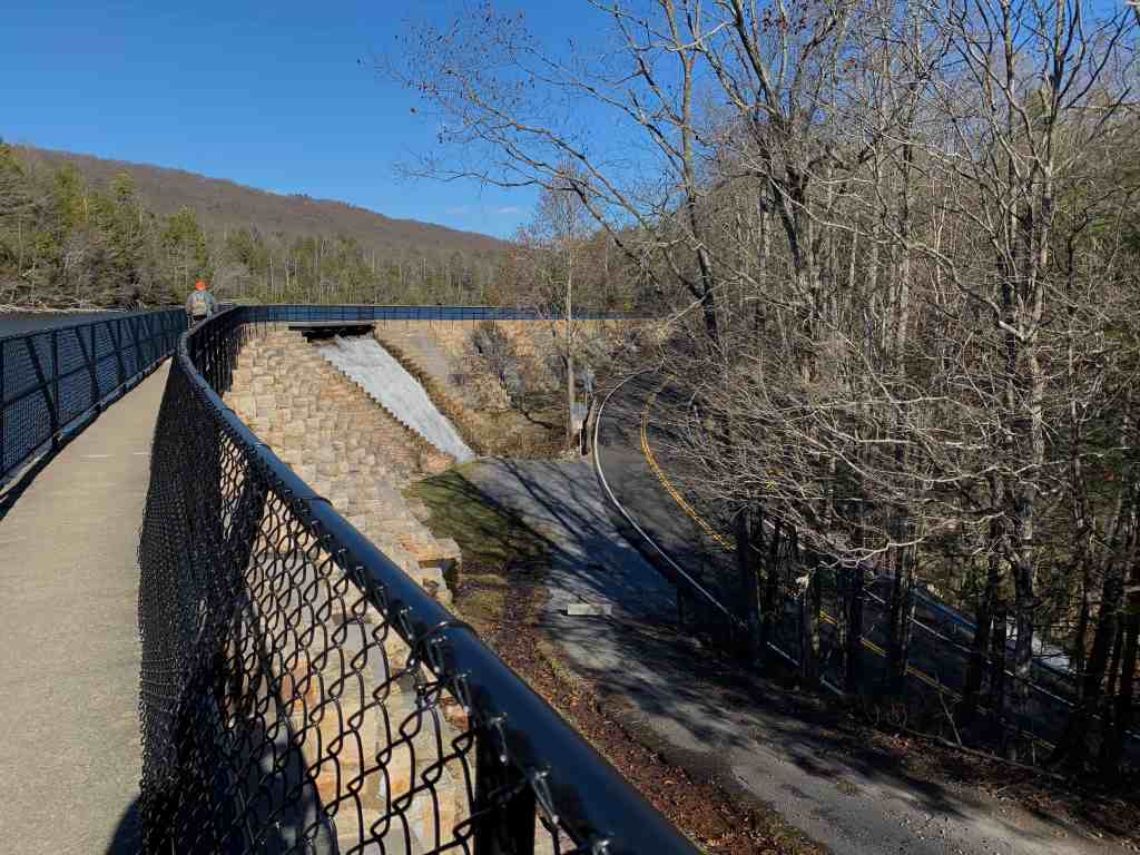I paused as we crossed it to take a photo. There was a lot of water coming over the spillway. I would say that Dolan Branch Falls, which you can see just below the roadway, were beautiful with the large volume of water, but I didn’t have the energy to hike down there and see.