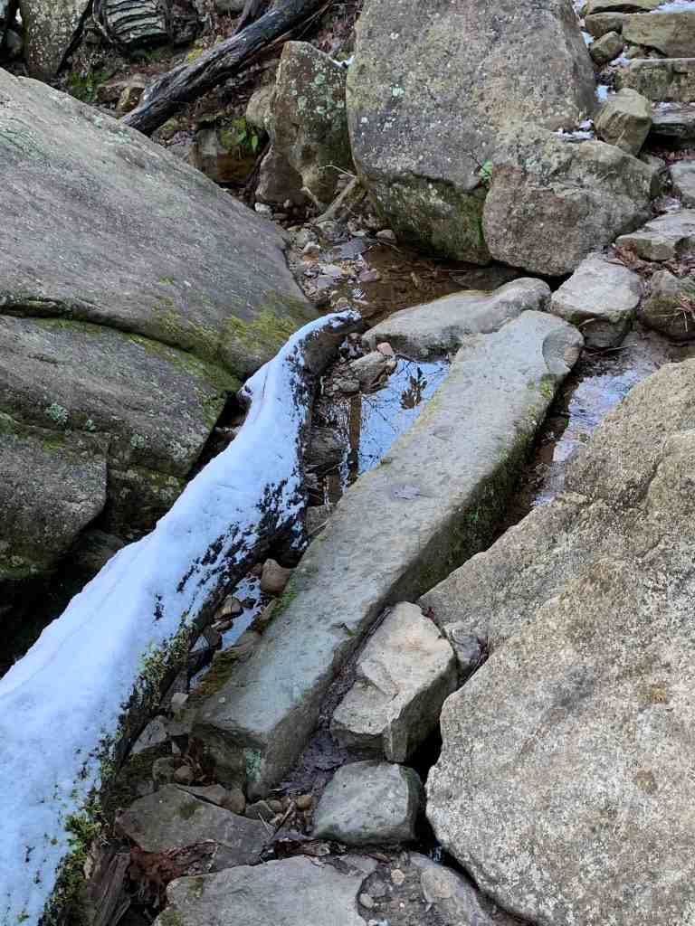 We had seen some snow flurries in town the last couple of days, so hoped we might see some on the ground here in the mountains. There was a small amount scattered about near the beginning of the trail.