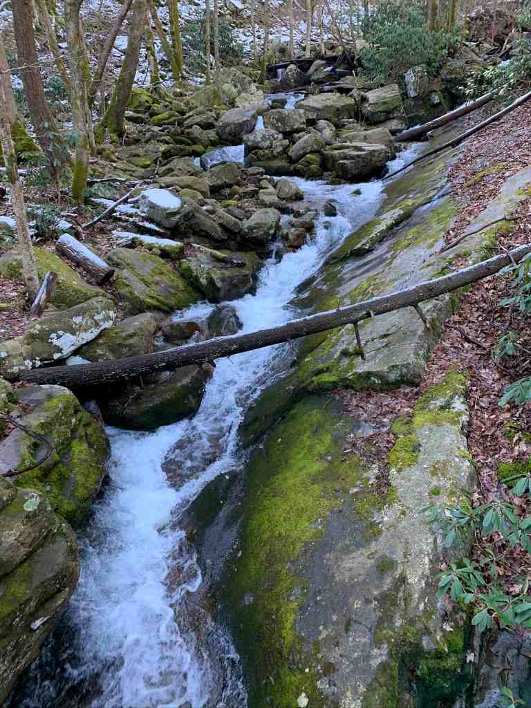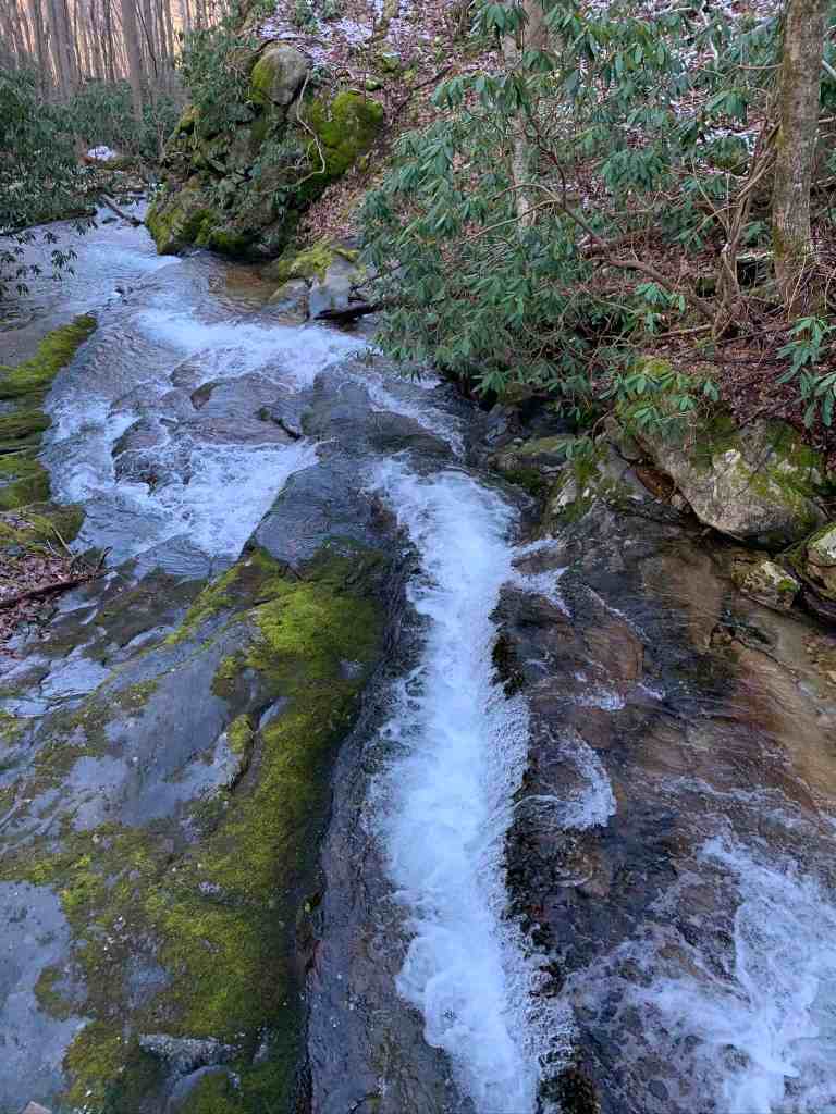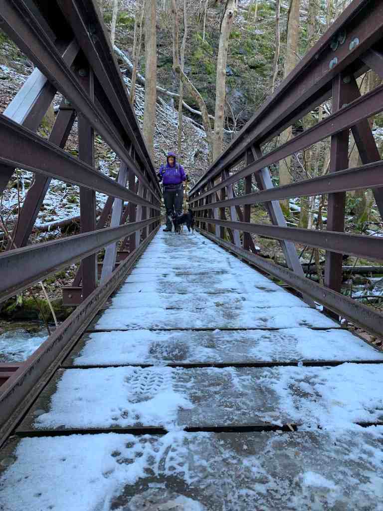 About 35 minutes into the hike we arrived at the bridge that was built in 2012 to take you across the creek. I can imagine this was a tough crossing in the past. There are beautiful views both upstream and downstream from the bridge. Today it was a bit slick with ice.