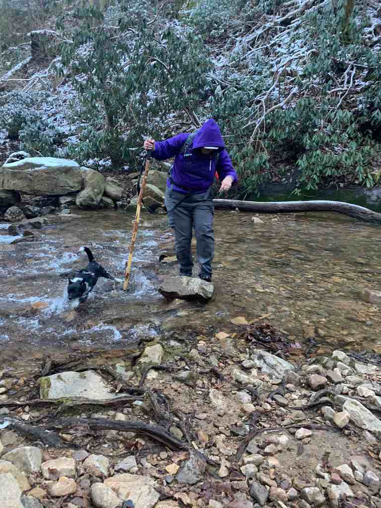 Larry crossing the creek