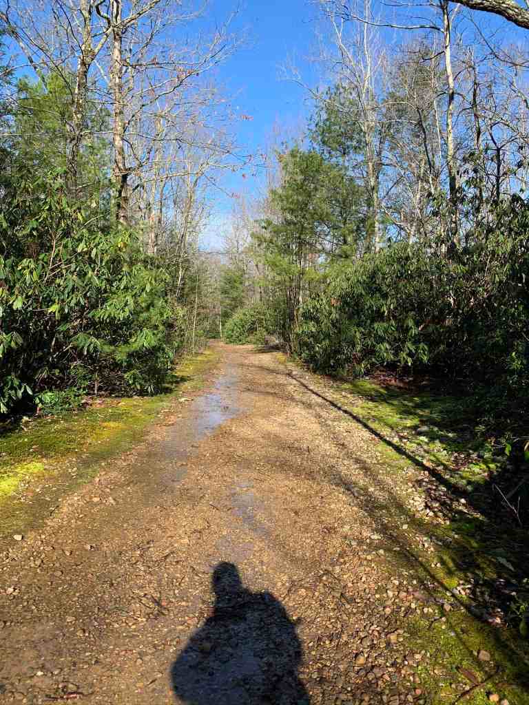 We were soon back at the clearing that holds the three trail heads. We decided to walk over to see what the Phillips Hollow Trail looked like. It would not be a possibility today, since it begins with a very deep creek crossing. This was fine with us since this trail was marked on the sign as “most difficult”.